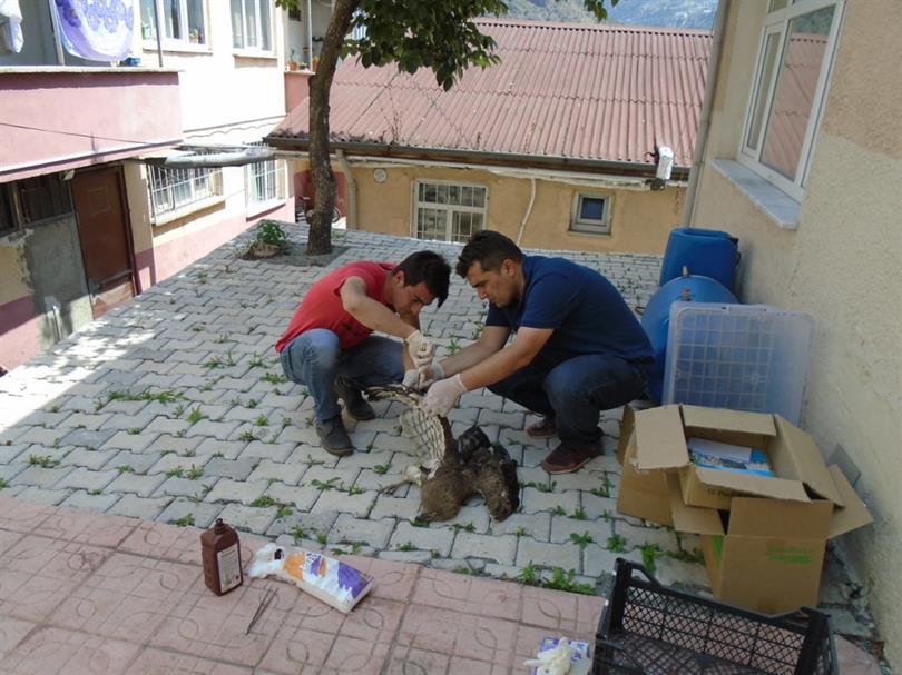 Veteriner Hekimlerimizce yapılan ilk muayenede sağ kanadının kırık olduğu ve enfeksiyona maruz kaldığı gözlemlendi. Gerekli tedavi yöntemlerinin uygulanmasından sonra yaralı kartal Doğa Koruma ve Milli Parklar Şube Müdürlüğü ekiplerine teslim edildi.